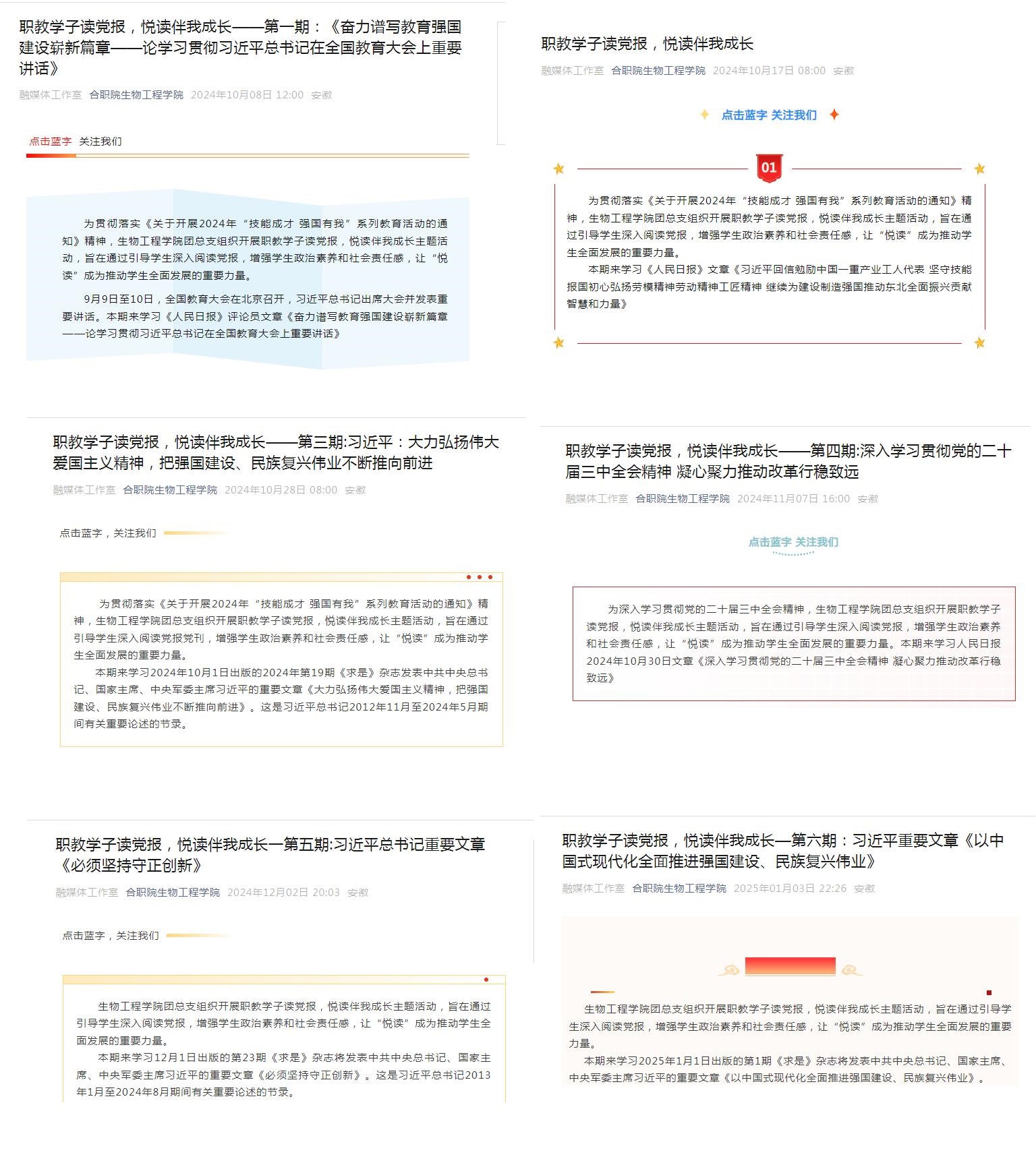 为全面贯彻党的二十大和二十届二中、三中全会精神,深入学习贯彻习近平总书记关于职业教育的重要指示批示精神,落实立德树人根本任务,加强职业学校学生思想政治教育,培养德技并修的高素质技能人才,自2024年10月以来,KY开元集团官网入口依托官方微信公众号平台在全院范围内组织开展了“职教学子读党报,悦读伴我成长”活动。平台已推送6期《人民日报》、《求是》有关篇目原文,引导学生深入学习党的理论,了解国家大事,坚定理想信念,为培养担当民族复兴大任的时代新人注入新的活力。