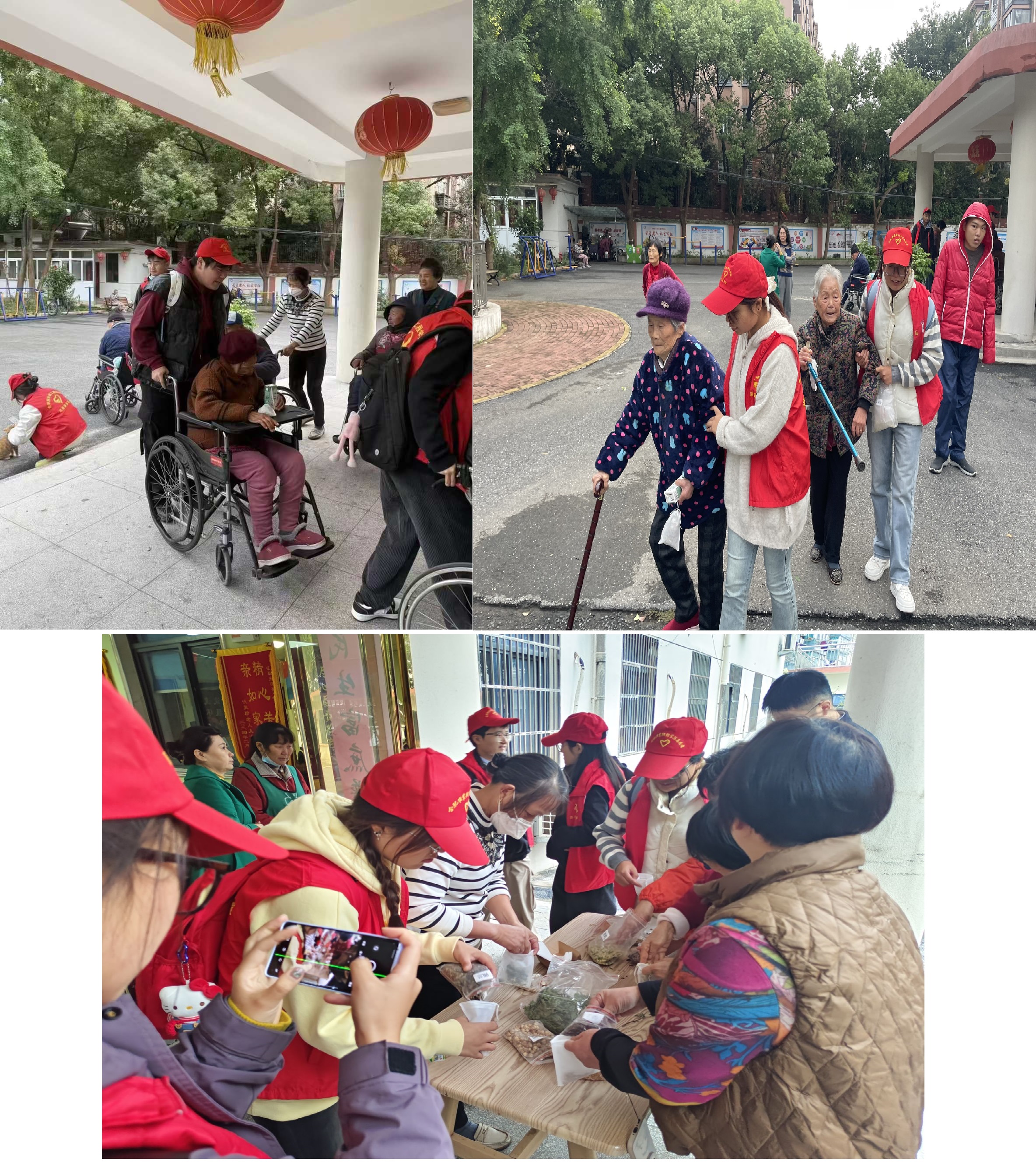在活动开始时,志愿者们逐一将慰问品递到每位老人的手中,慰问品包括面包和牛奶。看见老人们脸上洋溢的笑容,大家倍感欣慰。通过赠送慰问品,志愿者们不仅向老人们表达了年轻一代敬老爱老的心意,更深刻体会到尊老敬老的重要性。紧接着,在养老院的活动室内,志愿者们手把手教老人们如何制作香囊。志愿者们将提前准备好的材料铺陈在桌面上,方便老人们拿取。在制作过程中,志愿者们细致为老人们讲解步骤,并教老人们如何将不同香囊内芯(艾草、薰衣草、茉莉花等)塞入香囊空袋中。老人们亲自动手,兴致勃勃。香囊具有驱邪避秽的寓意,体现了重阳节的传统习俗。志愿者希望通过制作香囊,让老人们感受到九九重阳的节日氛围。为了更深入的了解每位老人的心声和需求,志愿者们坐下来,像朋友一样和老人们聊天,听他们分享生活的点滴,通过志愿者们的行动,让他们感受到社会的温暖和关爱,提升他们的生活质量和幸福感,同时激励更多人参与到爱老敬老的行动中。