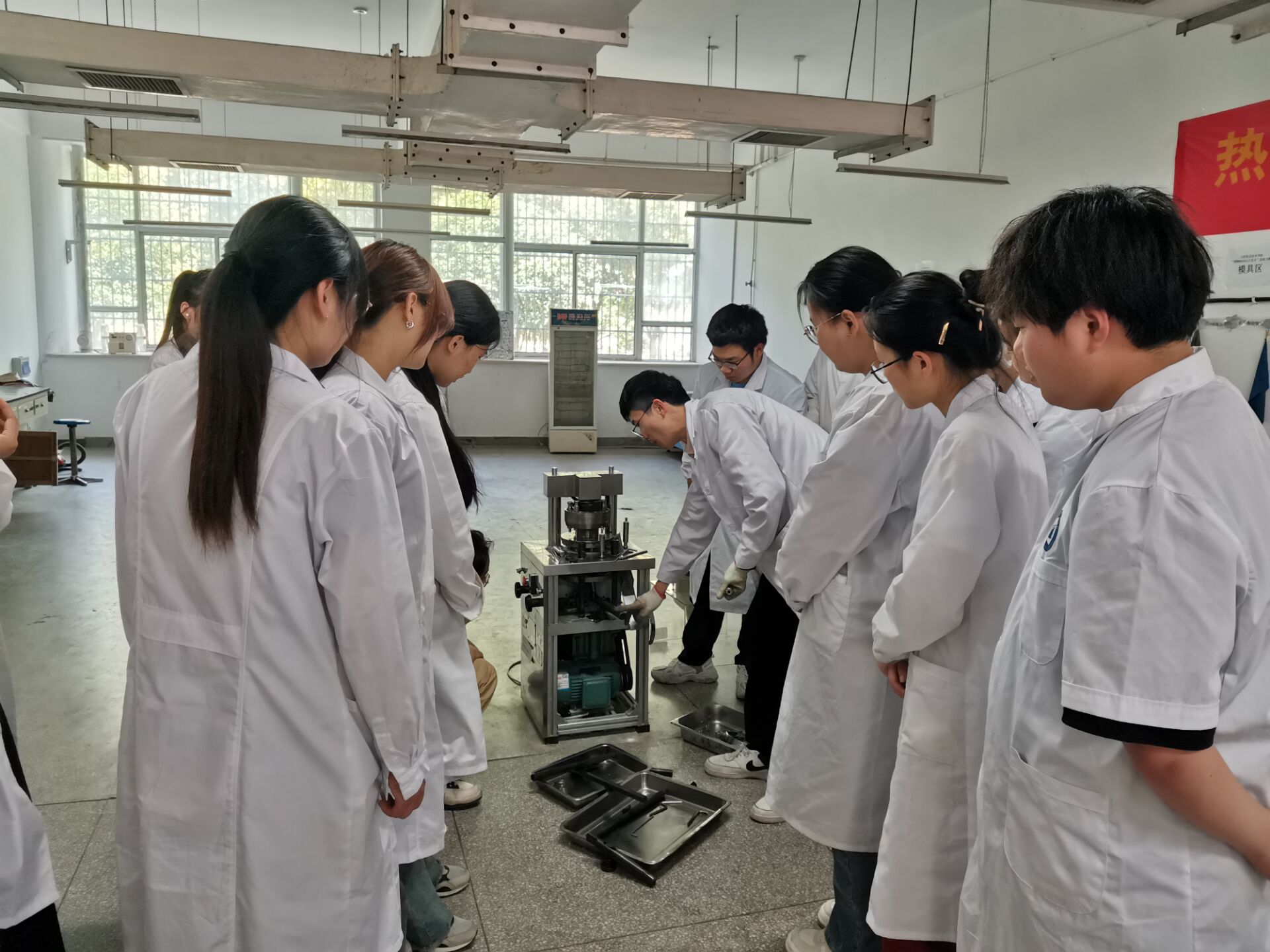 为贯彻落实“深化产教融合,赋能美好安徽建设”职教周主题精神,5月22日在鼓山校区药物制剂实训中心开展“药物制剂压片技术”科普体验活动。本次活动集中展示现代制药技术和制药设备,涉及模拟药品生产企业的片剂岗位、胶囊制备岗位和包衣岗位及其关键设备旋转压片机、全自动胶囊填充机及片剂高效包衣机等实操内容。KY开元集团官网入口第一党支部范高福工作室“双带头人”范高福、韦梦强两位老师担任讲解员,接待校内园林类专业、食品类专业及其他专业参观人员80余人次。