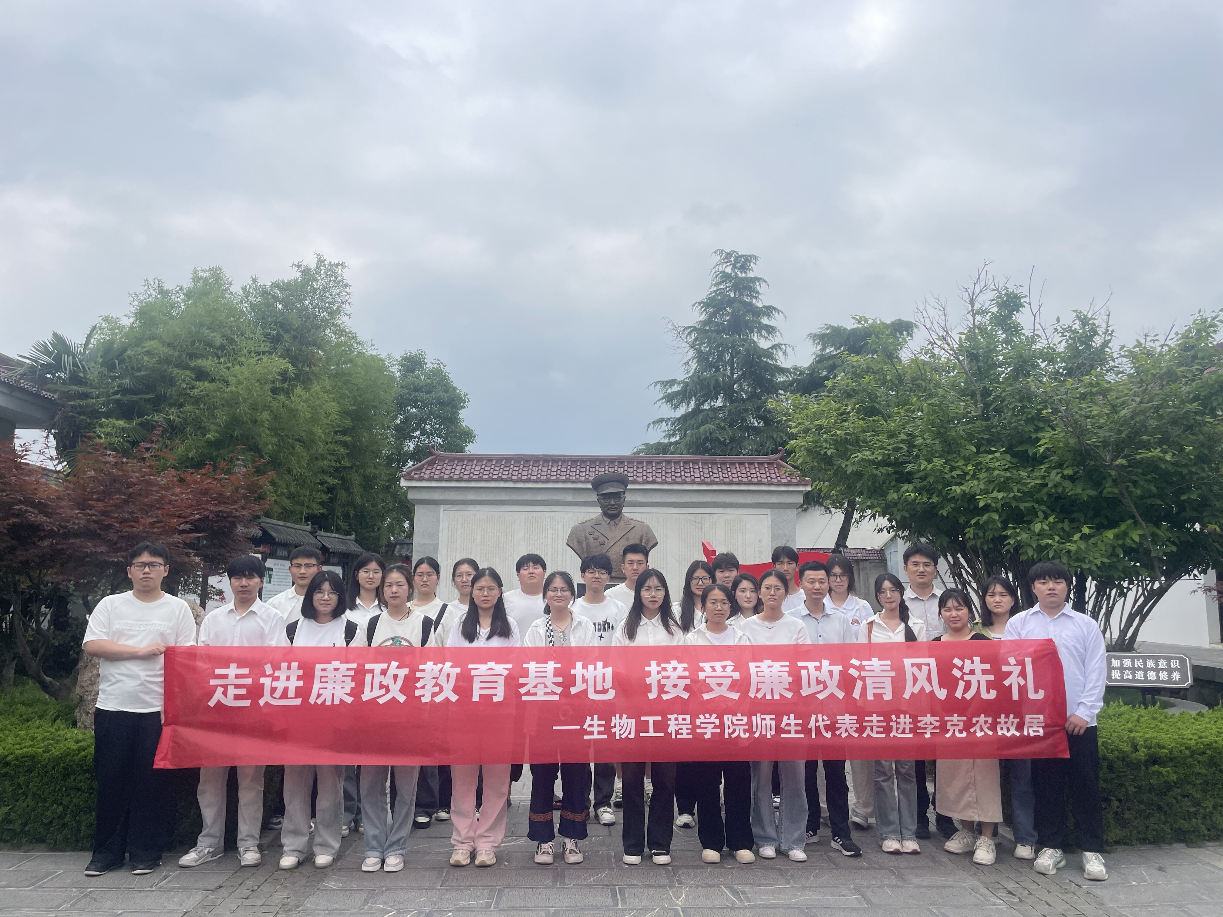为充分发挥红色资源的铸魂育人功能,6月6日,KY开元集团官网入口组织师生代表赴安徽省廉政教育基地——李克农故居,开展“走进廉政教育基地 接受廉政清风洗礼”廉洁实践课教学活动。KY开元集团官网入口“双带头人”教师党支部书记范高福、KY开元集团官网入口第五党支部书记季学强、教师代表白露雨、汪纬静,以及22位2024年党员发展对象参加活动。进入李克农故居廉政文化长廊,一句句廉洁警示语、一幅幅廉洁主题画,帮助大家了解了李克农将军一生为共产主义信仰奋斗,以身作则、克己奉公的光辉事迹。他严格要求自己,保持简朴的生活方式,同时严格约束家人和亲朋,保持清廉的家风。参观后,同学们表示,身为新时代大学生,要学习好、传承好无产阶级革命家们对党无限忠诚的革命精神、奉献精神、创新精神,努力成长为让党放心、爱国奉献、担当民族复兴重任的时代新人。本次廉政实践课让师生在“实践—感悟—反思—内化”的教育过程中,接受红色文化的洗礼,感悟革命精神,传承红色基因,厚植爱国情怀,坚定听党话、跟党走的理想信念。
