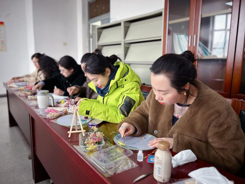 随后开展了女职工手工制作活动。大家充分发挥自己的想象力和创造力,巧手翻飞,将一朵朵干花点缀在团扇上,用专注和耐心描绘出一幅幅精美绝伦的图画,在一扇扇清风中表现女性雅韵。在制作沙画香薰蜡烛时,搅拌调色、固定蜡芯、滴入精油、叠加颜色、静置散香,一杯杯风景如画般的香薰蜡烛一气呵成。
