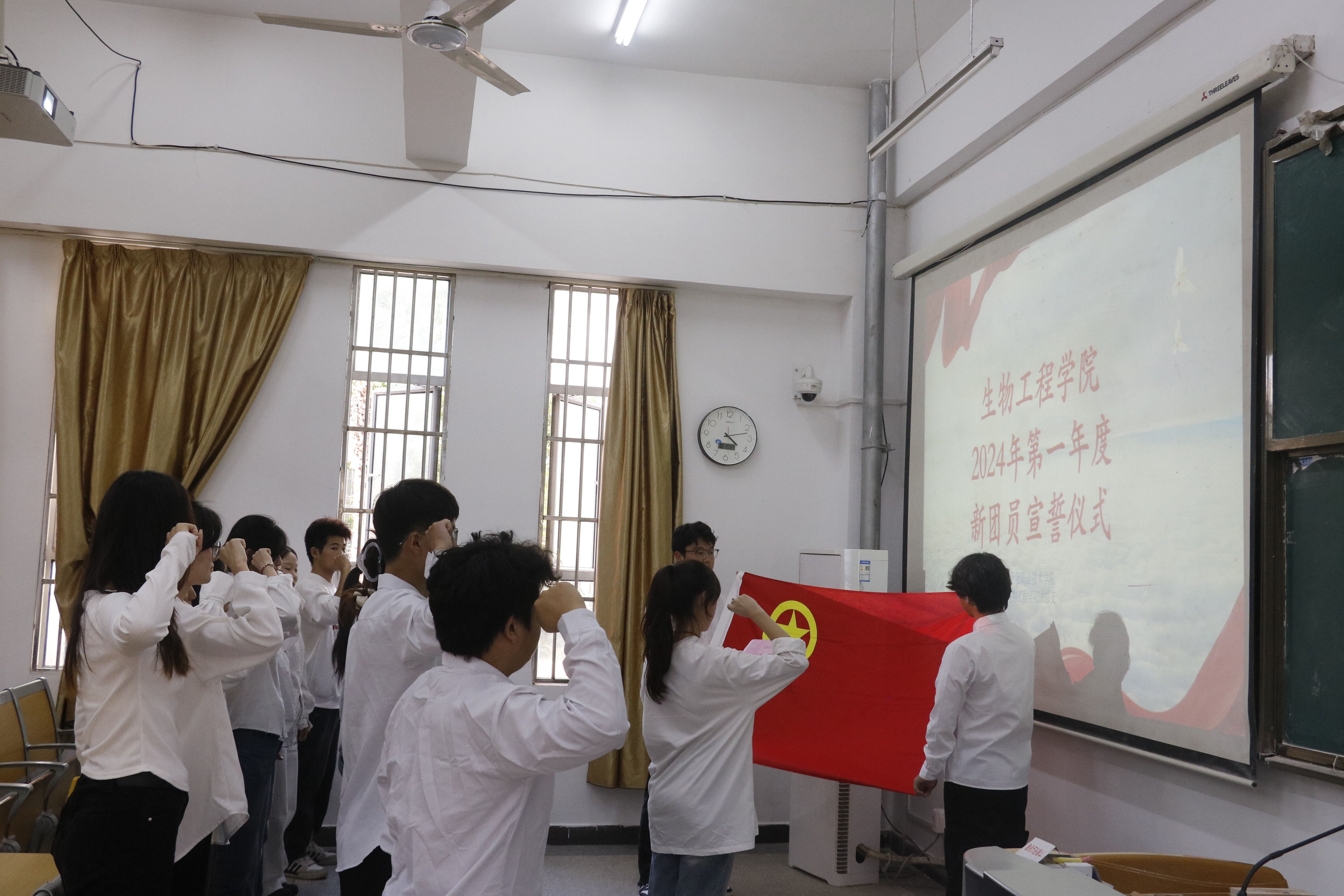 为贯彻落实《关于开展2024年“技能成才 强国有我”系列教育活动的通知》精神,庆祝中华人民共和国成立75周年,10月9日,KY开元集团官网入口团总支在B一楼阶梯教室开展了2024年新团员入团宣誓仪式。