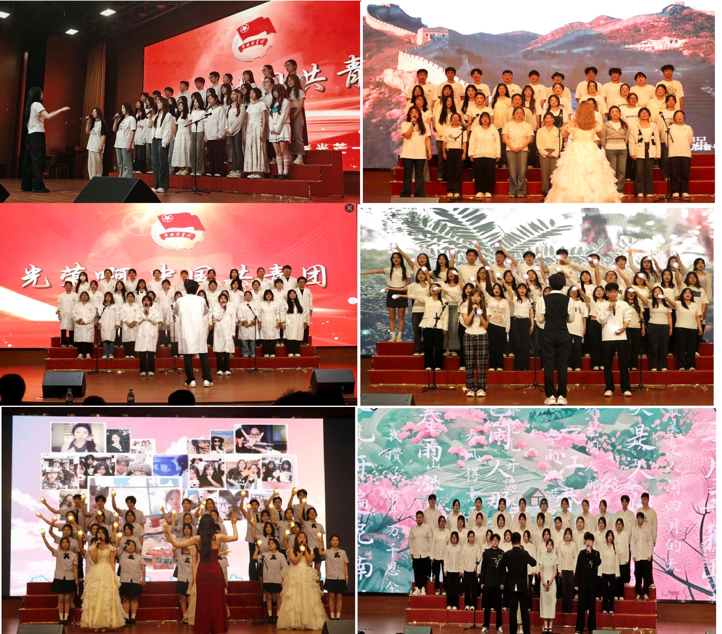 本届大赛延续“红色经典+青春流行”双主题赛制,各班通过合唱形式展现多元创意。红色篇章中,各班以《光荣啊,中国共青团》为固定曲目,讴歌伟大时代,凝聚青春力量。青春篇目上,各班演唱青春流行歌曲,通过互动道具与创意队形,演绎班级团结奋进的青春故事。大赛在主持人热情洋溢的开幕词与嘉宾介绍中拉开帷幕。各班级满怀热忱,依次登台献唱,以多元曲风展现青春风采:《夜空中最亮的星》传递希望,《稻香》诠释温暖力量,《我乘着风飞过来》彰显无畏朝气,《上春山》则表达对春天、生活、祖国和未来的热爱与信心......各班级以独特演绎尽展班级风采,奏响青春激昂乐章。