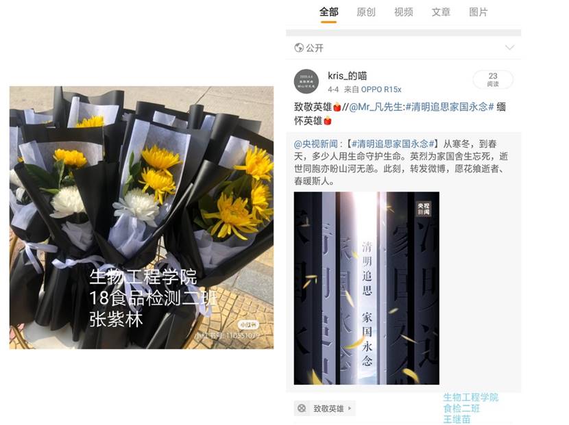 这一天,全国各地的上空拉响了防空警报,KY开元集团官网入口全体师生在警报的悲鸣声中哀悼为抗击疫情而牺牲的中国烈士和被新冠病毒夺取宝贵生命的同胞。这一天,KY开元集团官网入口师生纷纷转发央视新闻、人民日报等多家网络媒体发表的哀悼图文,自发地在自己的朋友圈、空间动态表达最沉痛的哀思。这一天,KY开元集团官网入口各个班级团支部成员采取制作手抄报、折纸花、写家书、扫墓等多种方式,以最诚挚的心来深切悼念已逝英魂。