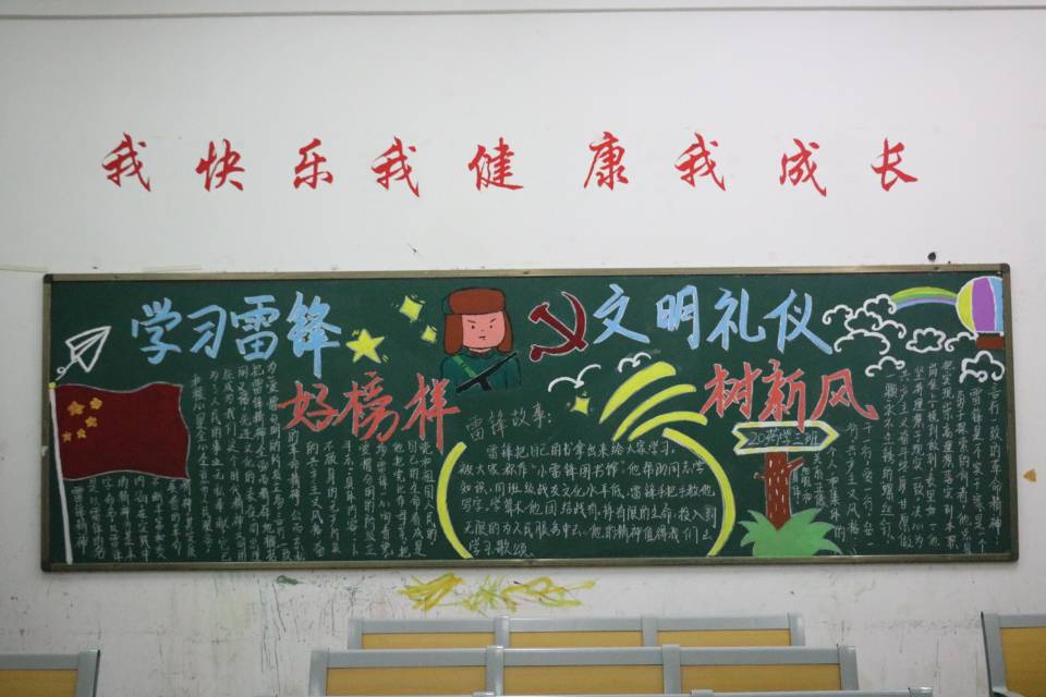 本次黑板报要求设计内容切合主题,突出雷锋精神的内容。对此,各班级学生认真对待,交出了一幅幅高质量的作品。此次黑板报评比一方面,让学生营造团结友爱的人际关系,构建和谐稳定的社会风气,就应教育引导人们自觉用为人民服务的人生观指引人生,还能较好地提高了学生的艺术视野和审美能力。