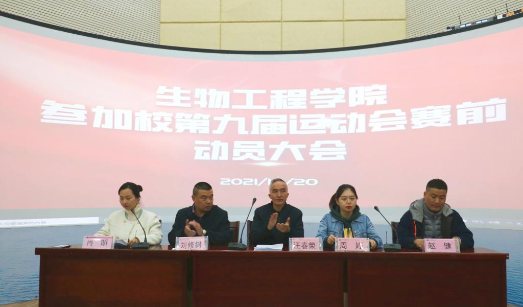 为充分调动KY开元集团官网入口学生运动员参加校第九届田径运动会的积极性,同时保障运动会期间各项服务工作有序进行,2021年10月20日星期三下午,由生物工程学院主办的校田径运动会动员大会在图书馆二楼报告厅举行。出席本次会议的人员有党总支书记汪春荣、院长刘修树、党总支副书记周婷、团总支书记肖昕、学管老师、团总支兼职副书记、主席团、学生会各部门负责人及所有参赛运动员。本次会议由肖昕老师主持。