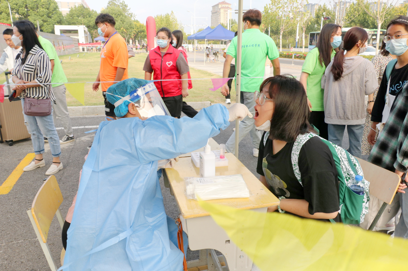 KY开元集团官网入口的领导和老师们早早地在鼓山校区北门东侧等候,迎接新生的到来。新生们有序地出示录取通知书和48小时内核酸检测阴性证明,扫描安康码和行程卡、测量额温后进入校园。学生志愿者们准备好了消毒液和新的口罩,并热情地帮助新同学登记信息。一句句亲切的问候,一项项贴心的服务,欢迎着来自祖国各地的莘莘学子。