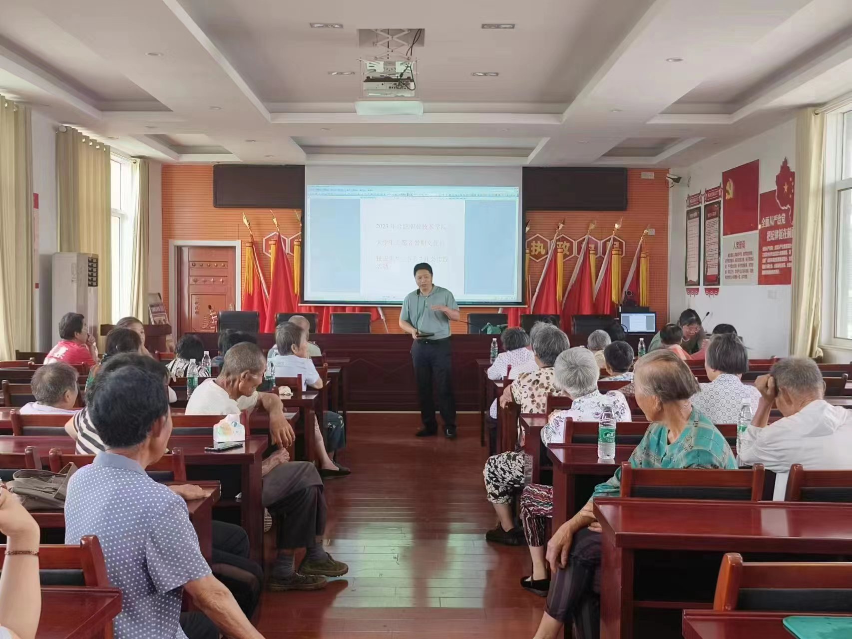 活动开始,合群行政村书记王庆生向老年大学的学员们致以节日的问候,并对合肥职业技术学院师生的到来表示欢迎。