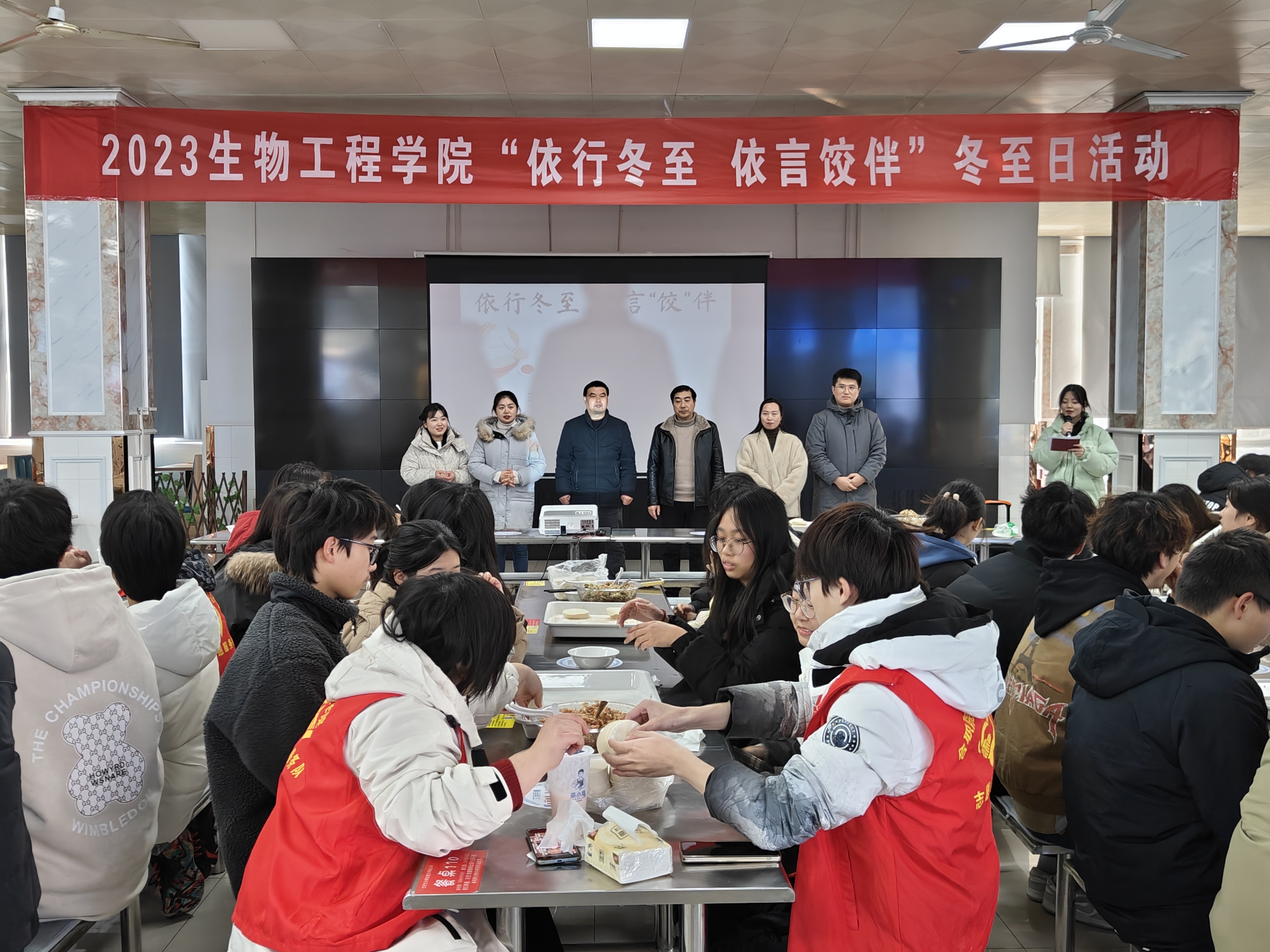 冬至时节“吃饺子”是中国许多地方的传统习俗,为了让同学感觉到节日的温暖和缓解思乡之情,并借此弘扬我国传统饮食文化,12月20日下午,KY开元集团官网入口学生会及学生志愿者于鼓山校区二食堂二楼开展主题为“依行冬至 依言饺伴”的第六届传承冬至文化弘扬传统美德活动,KY开元集团官网入口院长刘修树、党总支副书记(主持工作)慈龙保、副书记周婷以及专职辅导员出席本次活动。