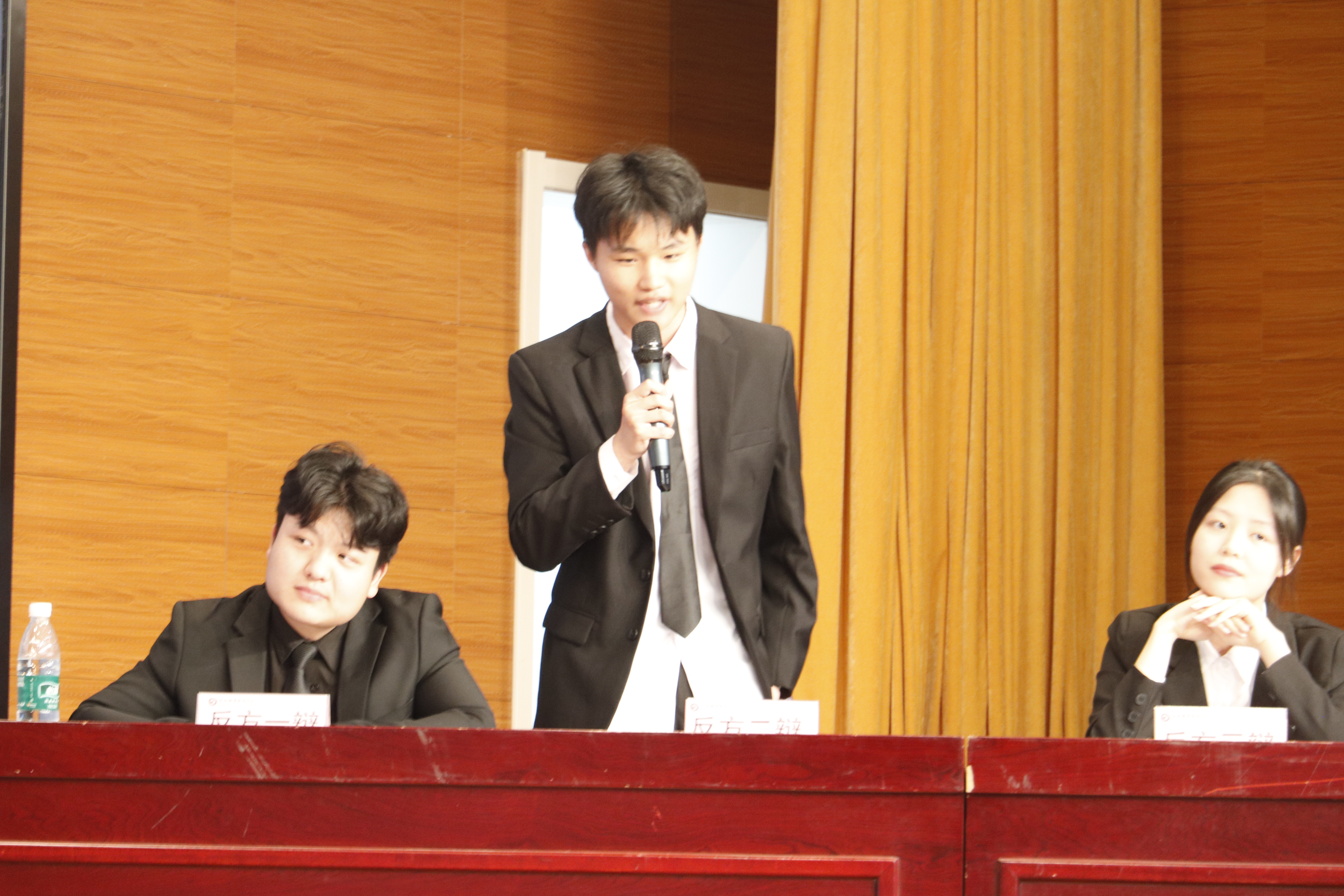 然后二辩胡超凡补充陈词,二辩灵活的思维和缜密的逻辑推理,不时的赢得场下阵阵掌声。辩手们在比赛的自由辩论阶段,巧妙运用逻辑推理、事实例证和情感渲染等手法,为观众呈现了一场精彩纷呈的辩论盛宴。辩手们的激烈辩论和精妙应对引起了观众的阵阵掌声。现场气氛热烈而紧张,观众们屏息凝听,不时发出惊叹和喝彩声。经过几轮激烈的角逐,最终,KY开元集团官网入口代表队凭借其出色的表现荣获2024年“合职杯辩论赛”冠军。