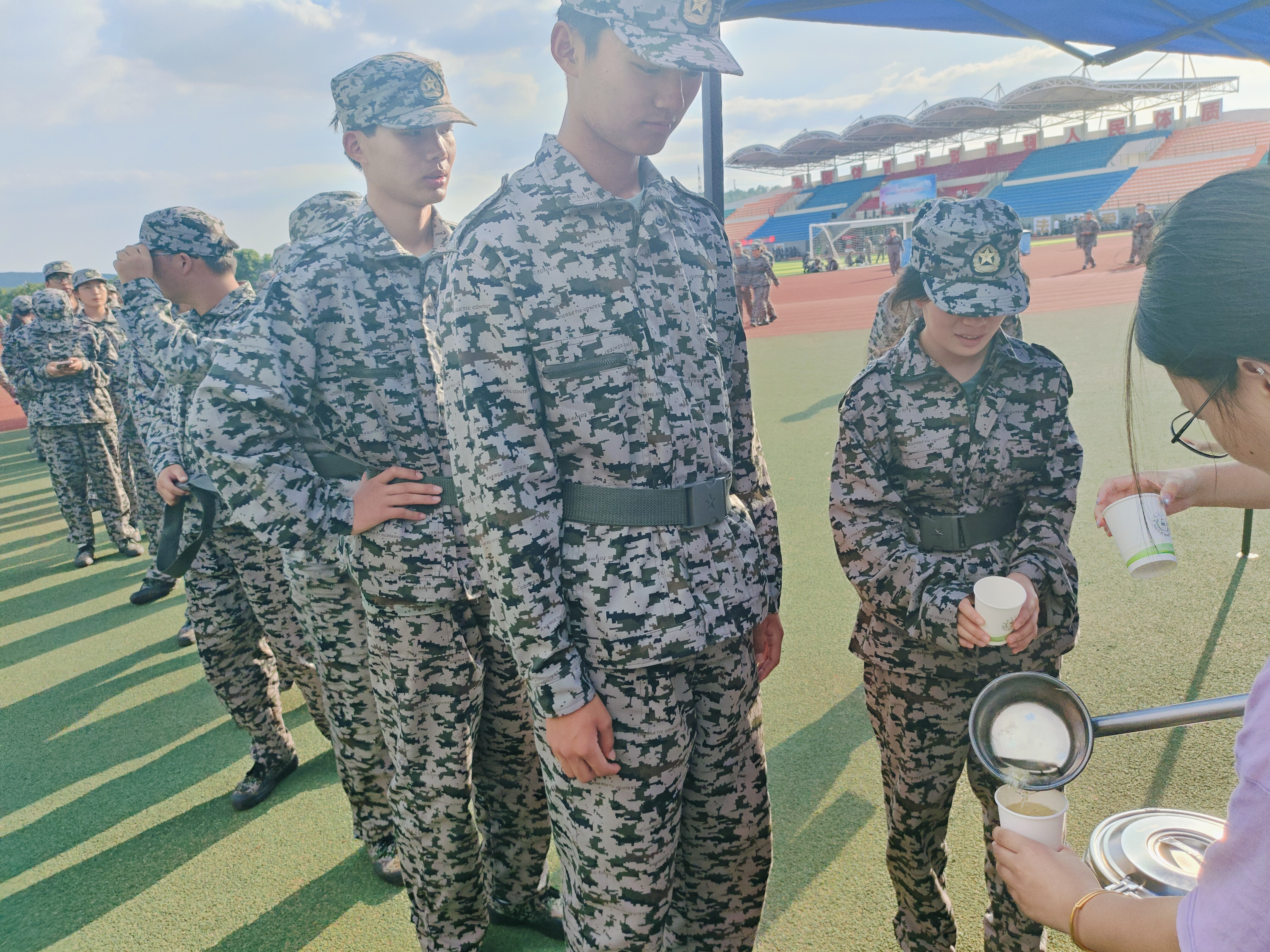 当天下午,药海拾贝社的成员早早来到了活动室,开始了菊花茶的制作,清洗冲泡完成之后,由志愿者运送到训练场,并且有序开展分发菊花茶行动。一位刚刚下训的新生接过茶杯,露出了惊喜的表情:“真的太贴心了,谢谢你们!”一位教官则感慨地说:“这茶喝下去,感觉整个人都清爽起来了。”这些简单的互动和反馈,让志愿者们感受到了付出的快乐和意义。